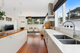 If entertaining is high on the 'must-have' list then check out that stunner of a kitchen with pendant lights over a feature timber-topped island, stylish work surfaces and a sea of stainless apps & contemporary cabinets. Integrated dining and lounge invites opportunities for socialising where you'll find it easy to relax surrounded by muted modern tones offset by rich glowing native flooring. All 3 bedrooms are genuine doubles and supported by a family size bathroom and a study/nursery room a bonus.