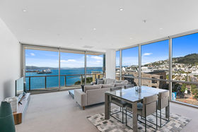 This immaculately presented 9th floor apartment is absolutely all about position and the view. The 133m² floor plan has been thoughtfully designed with separation between the two double bedrooms which both enjoy the gorgeous views. The master bedroom has a beautifully tiled ensuite, separate dressing room plus doors that open to the deck. The open plan living, dining and kitchen are positioned to enjoy not only the stunning harbour view, but the activity of Te Papa, Mt Victoria, Oriental Parade and city escape. Always something to see and interest you. You are living in the city fringe - the restaurants, bars, cinemas and the waterfront, all these conveniences are at your doorstep. This apartment complex offers concierge service, a meeting room, cinema and gymnasium for residents. There is a secure car park available with lift access to your entrance gallery. The apartment consists of composite concrete-steel flooring supported by steel beams/columns with seismic bracing, provided by a reinforced concrete sheer core. The design meets 100% of building code requirements and a high level of seismic performance. Gorgeous at its best - you will never be lonely or feel that the world has left you behind. It's a glorious place to live. RV is $1,775,000. Body Corp Fee: $23,480 per annum. Rates: $8,330.07 per annum. Call the exclusive marketing agent to conduct your appointment and assist with all information.