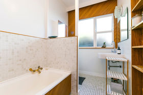 Every now and then a special opportunity comes along, and this architectural 1960s family home will appeal to those looking for good design, wonderful sun, views and potential to improve. Originally designed by Czech architect Frederick Ost, this is the first time it has come on the market since 1962. Elevated above the road and drive-on with parking for two cars, you enter the home through the downstairs area which has potential to create separate accommodation but is currently set up as up as a double bedroom, bathroom and living space. A versatile space for older teenagers or visitors.