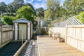 - Large storage shed at the rear of the property