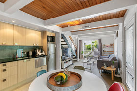 -Well-appointed kitchen for the rare occasion when you don't want to eat out at the nearby cafes and restaurants