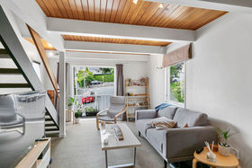 -Stylish interior with timber-panelled ceiling